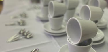Louças de porcelana, talheres em aço inox, rechauds de prata e copos sofisticados — cada detalhe pensado para valorizar sua mesa e transformar refeições em experiências.