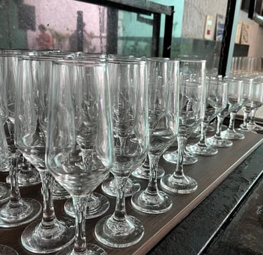 Taças e copos de uísque devem ser solicitados com antecedência;